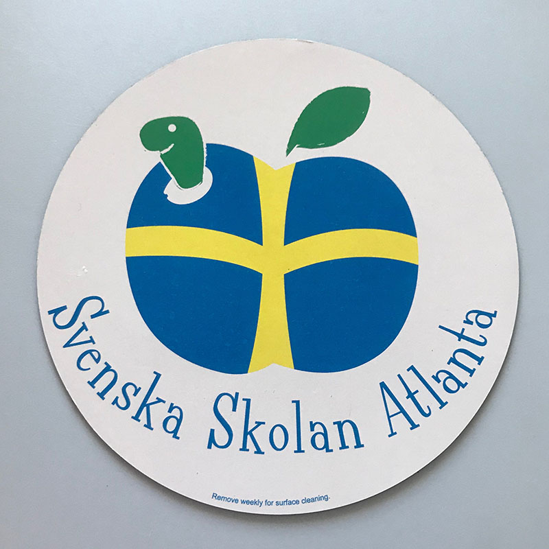 4. Fun car magnet in white with Swedish School of Atlanta logo.